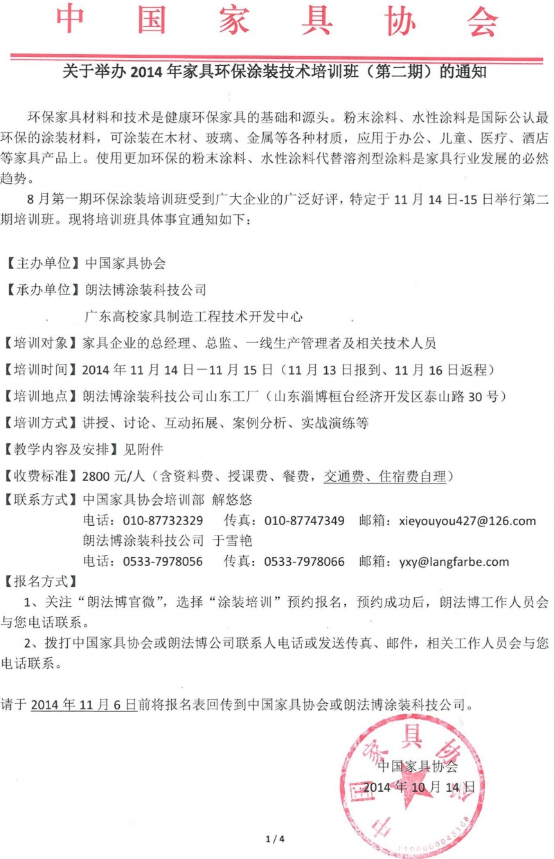 2014年家具環(huán)保涂裝技術(shù)培訓(xùn)班課程