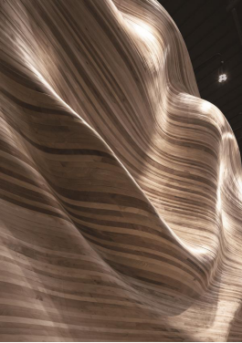 回憶起當(dāng)時(shí)的創(chuàng)作靈感,他描繪了自己看到工匠在鋸木時(shí),木花飛旋在空中,在陽光下舞蹈。木花的形態(tài)讓杜柏均意識(shí)到,木片的卷曲可以呈現(xiàn)輕盈的質(zhì)感,一改我們平時(shí)對木材的敦厚印象。