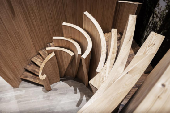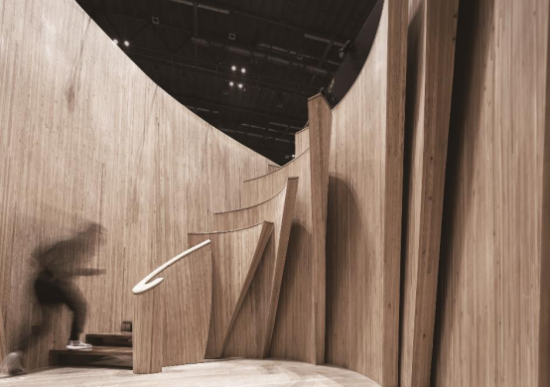 在去年的中國家具博覽會(huì)上,杜柏均使用美國紅橡和白橡打造了驚艷的全木制展廳,木材的可塑性被展現(xiàn)得淋漓盡致。