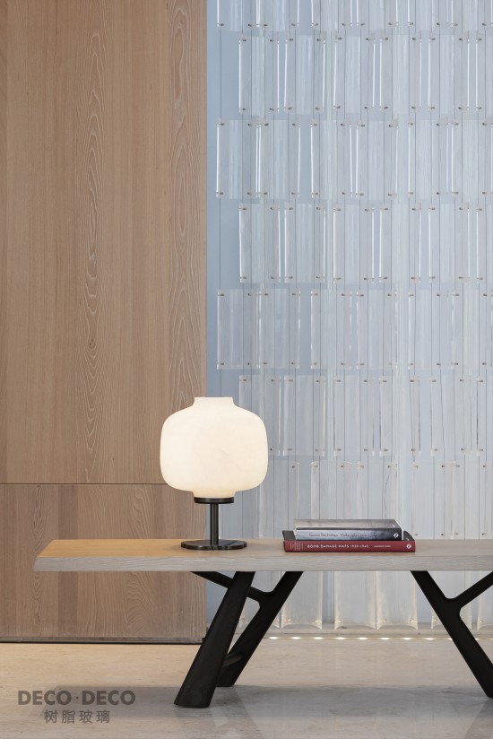 DECO·DECO樹(shù)脂玻璃堅(jiān)持美學(xué)與功能相輔相成,具有比普通玻璃通透度更高,具有晶瑩剔透的外觀、耐用持久、安全性強(qiáng)、可塑性高,0甲醛等優(yōu)勢(shì),做到環(huán)保、科技、創(chuàng)新面面俱到,賦予設(shè)計(jì)無(wú)限可能性,在新型材料中深受設(shè)計(jì)師愛(ài)戴。