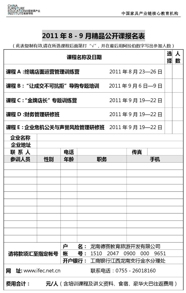 2011年8-9月中國(guó)家具教育學(xué)院最新公開(kāi)課程