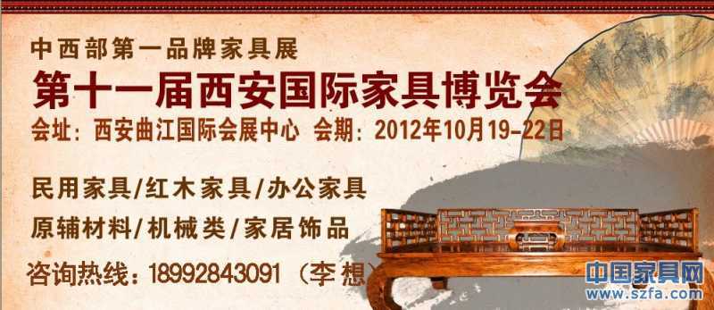 第十一屆西安國際家具博覽會將于2012年10月19日-22日在西安曲江國際會展中心隆重舉行,本屆博覽會利用前十屆展會成功的辦展經(jīng)驗,特開設紅木古典家具專館,將廣泛邀請上百家品牌企業(yè)參展,旨在依靠西安十三朝古都的深受文化底蘊,打造出西部紅木古典家具最佳的交流與合作平臺。