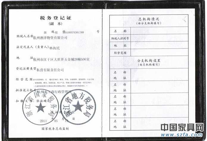 | 發(fā)證機(jī)構(gòu): | 杭州市稅務(wù)管理局 | 發(fā)證時(shí)間 : | 2011-05-08 |