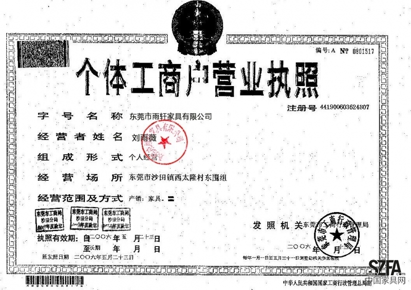 | 發(fā)證機構: | 東莞市工商行政管理局限 | 發(fā)證時間 : | 2006-05-23 |