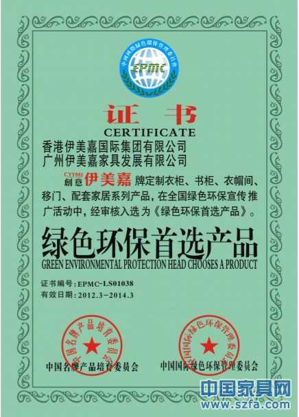 證書介紹 伊美嘉提倡“環(huán)保 健康”為主題,推動城市經(jīng)濟健康發(fā)展,集研發(fā)、設(shè)計、生產(chǎn)、銷售為一體,弘揚家具文化。以"追求完美家居空間"的企業(yè)價值觀,創(chuàng)新、雙贏、超越"的企業(yè)精神,產(chǎn)品"環(huán)保 健康好家居—的企業(yè)理念,成為行業(yè)中領(lǐng)航者。好產(chǎn)品,才能賣得瘋賣得好! 證書圖片 |