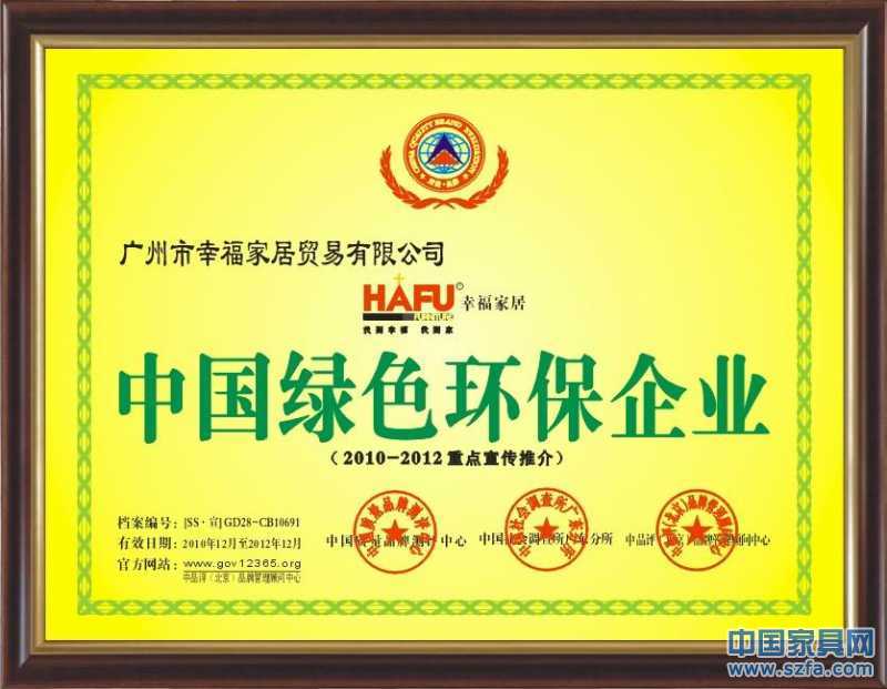 2010年12月幸福家居被中國質(zhì)量品牌測評中心、中國社會調(diào)查所廣東分所,中品評(北京)品牌管理顧問中心評為“中國著名品牌”和“中國綠色環(huán)保企業(yè)”