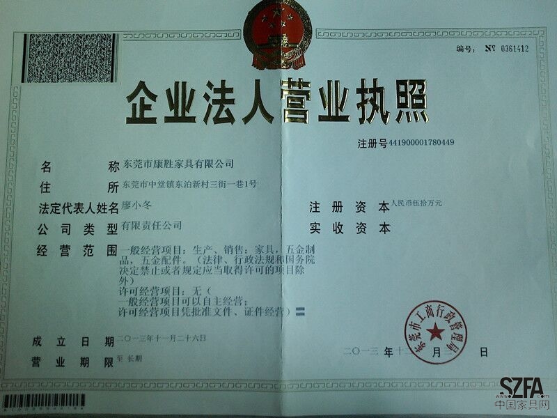 | 發(fā)證機(jī)構(gòu): | 東莞市工商行政管理局 | 發(fā)證時(shí)間 : | 2013-11-26 |