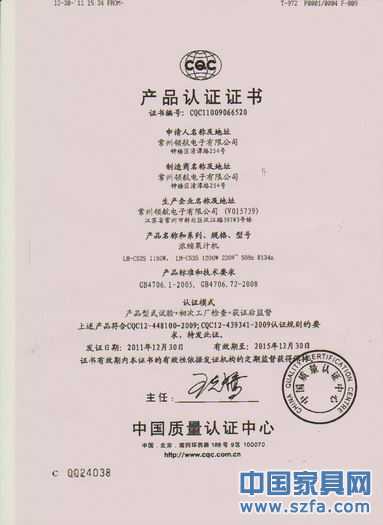 | 發(fā)證機(jī)構(gòu): | 中國(guó)質(zhì)量認(rèn)證中心 | 發(fā)證時(shí)間 : | 2012-01-01 |