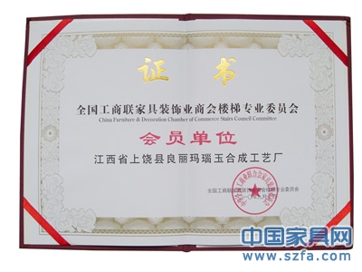 | 發(fā)證機(jī)構(gòu): | 全國(guó)工商聯(lián)家具裝飾業(yè)商會(huì)樓梯專業(yè)委員會(huì) | 發(fā)證時(shí)間 : | 2010-09-10 |