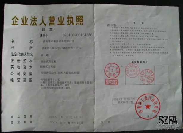 | 發(fā)證機(jī)構(gòu): | 濟(jì)南市工商所 | 發(fā)證時(shí)間 : | 2009-09-21 |