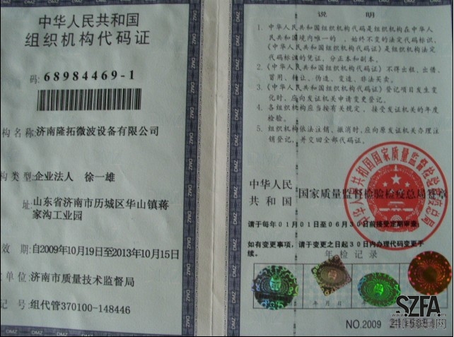 發(fā)證機(jī)構(gòu):   濟(jì)南市工商所 發(fā)證時(shí)間 :   2009-09-15