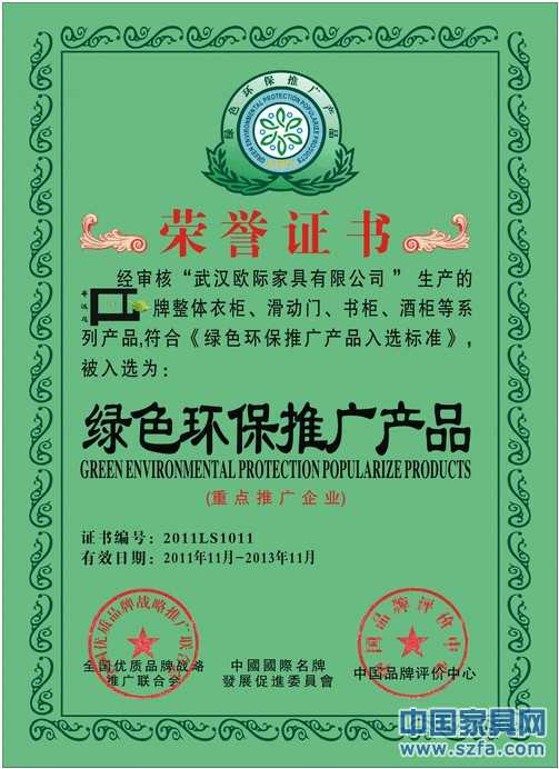 證書介紹 綠色環(huán)保推廣品牌 證書圖片 |