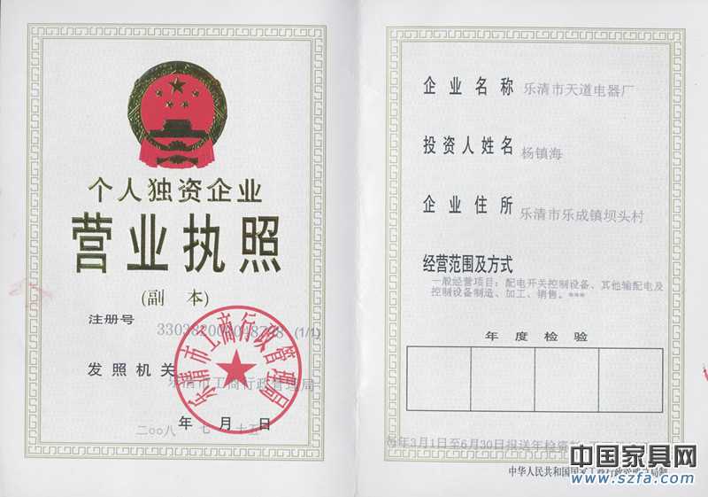 | 發(fā)證機構: | 樂清市工商行政管理局 | 發(fā)證時間 : | 2008-07-15 |