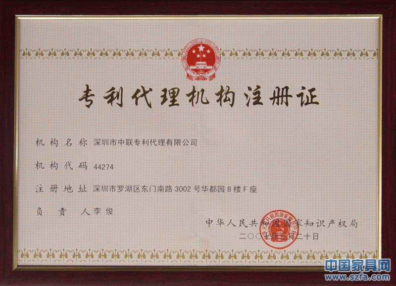 榮譽(yù)資質(zhì) 專(zhuān)利代理機(jī)構(gòu)注冊(cè)證書(shū)