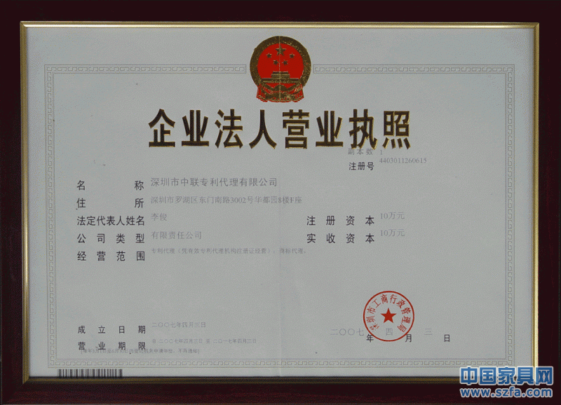發(fā)證機構(gòu):   深圳工商局 發(fā)證時間 :   2007-07-01