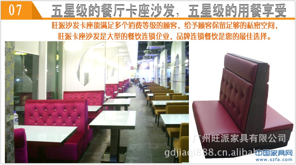 廣東旺派家具有限公司是廣東著名家具企業(yè),經過廣州市工商局注冊的企業(yè).廣東生產基地位于享有國際家具商貿之都美譽的佛山市順德區(qū),在國內擁有30000平方米的廠房和一流的生產設備,各類技術管理及高級技師等500多人,在國外有10000于平方米的工廠,200多名工人。廣東旺派家具有限公司主要從事餐飲家具的研發(fā)、生產、銷售、服務和外貿出口以及品牌經營為一體的大型實業(yè)公司,是一家致力于餐飲家具服務領域中具有高度專業(yè)性的現代化服務行業(yè)領跑者.主要生產經營餐廳卡座沙發(fā),麥當勞卡座沙發(fā),肯德基卡座沙發(fā),必勝客卡座沙發(fā)桌椅,茶餐廳卡座沙發(fā)桌椅,西餐廳卡座沙發(fā)桌椅,咖啡廳桌椅沙發(fā),快餐廳桌椅沙發(fā),專業(yè)為客戶提供完善的產品設計、工程設計方案、售后服務,旺派卡座沙發(fā)成功將卡座沙發(fā)皮革耐磨的使用壽命延長3倍以上,為滿足全國各地的需求,現我廠推出全國范圍內免費專線物流送貨上門.