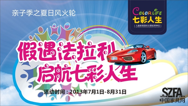 怎樣才能讓孩子們度過一個快樂而又難忘的暑假呢?深圳市七彩人生家具有限公司致力于打造青少年兒童家具頂尖品牌,在這個暑假,給孩子一個七彩假日。將于2013年7月1日—2013年8月31日攜手深圳市騎達貿(mào)易有限公司舉辦“親子季之夏日風火輪”主題活動。在全國各店面開展法拉利試駕體驗。