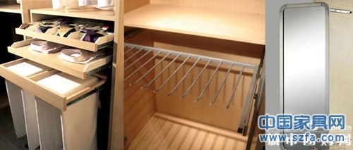 6、看五金,五金是確保衣柜使用舒適度、耐用度的重要指標(biāo),選購和驗(yàn)收時(shí)要仔細(xì)去推拉感覺。專業(yè)廠家采用名廠配件,有質(zhì)量保證。