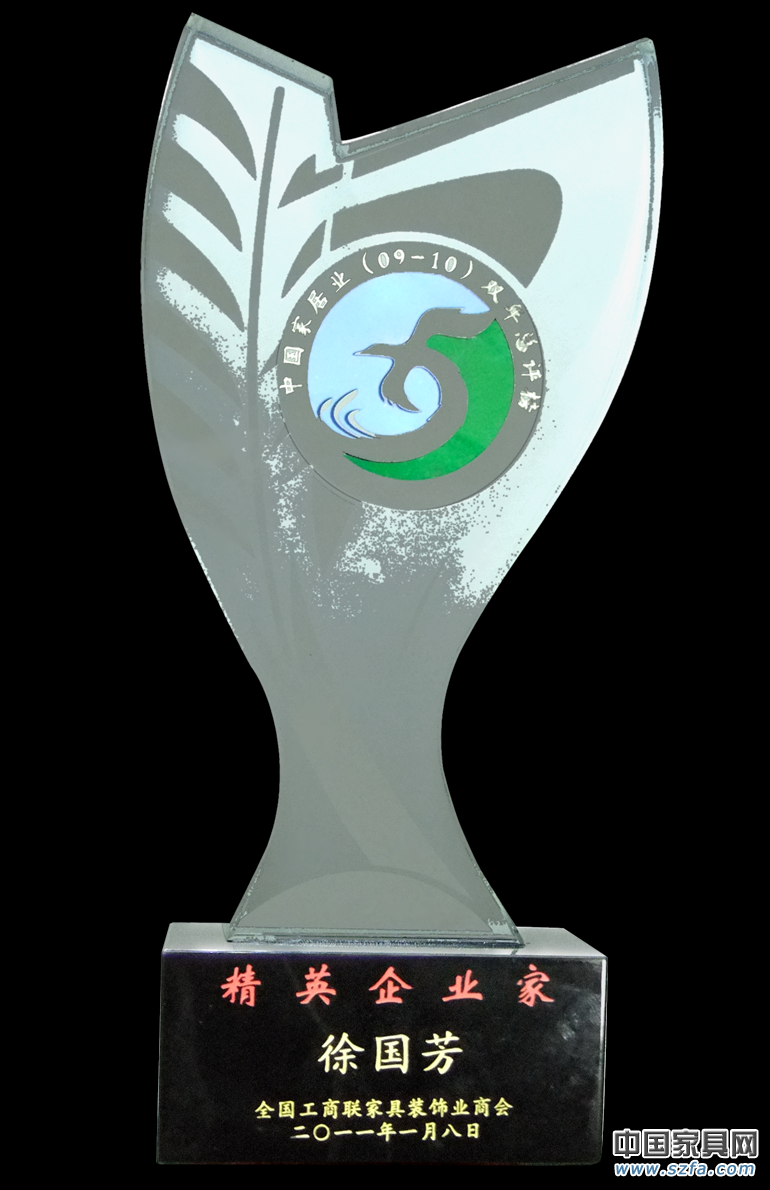 “全國(guó)工商聯(lián)家具商會(huì)雙年頒獎(jiǎng)活動(dòng)”是行業(yè)頂級(jí)品牌和優(yōu)秀企業(yè)集中亮相的最佳平臺(tái)??<瘓F(tuán)董事長(zhǎng)徐國(guó)芳先生以其行業(yè)、社會(huì)影響力和知名度等優(yōu)勢(shì),被授予“中國(guó)家居業(yè)09-10雙年總評(píng)榜精英企業(yè)家獎(jiǎng)”。