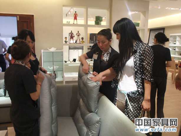 參觀過程中設(shè)計師們表示,楷模家具中西結(jié)合、風(fēng)格多樣,總體設(shè)計溫馨、和諧,人性化的設(shè)計很好地將生活細(xì)節(jié)融入到設(shè)計里面,設(shè)計水平和制作工藝屬國內(nèi)領(lǐng)先。設(shè)計師們不時向工作人員詢問每款家具的設(shè)計細(xì)節(jié),紛紛拍攝楷模產(chǎn)品、做記錄和索取相關(guān)資料??<揖叩暮芏鄧鴥?nèi)首創(chuàng)設(shè)計如艾格沙發(fā)抱枕、歐寶沙發(fā)、藍(lán)寶沙發(fā)等,也給設(shè)計師們留下了極其深刻的印象。參觀時,著名空間設(shè)計施繼誠先生給予了楷模家具設(shè)計“獨(dú)一無二,家裝、飾品與家具完美結(jié)合”的高度評價。