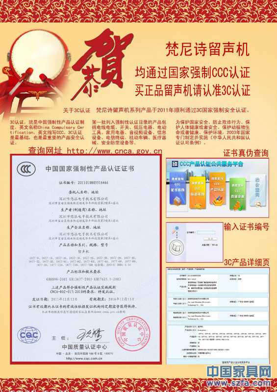 梵尼詩通過國家強制質(zhì)量認(rèn)證3C認(rèn)證,質(zhì)量升級,購買留聲機(jī),留意廠家是否為無營業(yè)照,無稅務(wù)登記,無質(zhì)量認(rèn)證。梵尼詩,您信的過的品牌留聲機(jī)! ![]() |
