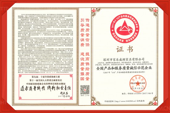 在本次“產(chǎn)品和服務(wù)質(zhì)量誠信承諾”的主題活動(dòng)評比中,深圳家樂威頓家具有限公司在近2000家參與的企業(yè)中,積極踐行產(chǎn)品和服務(wù)質(zhì)量誠信承諾,讓廣大消費(fèi)者分享更多的質(zhì)量紅利,倡導(dǎo)提高供給質(zhì)量,推動(dòng)質(zhì)量社會(huì)共治。