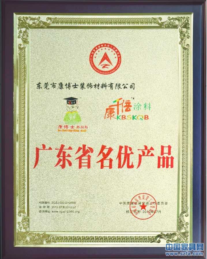 繼三月份我公司榮獲AAA+級中國質(zhì)量信用企業(yè)、四月份榮獲消費(fèi)者最信賴質(zhì)量放心品牌,五月份“多功能液體木膠粉”榮獲國家專利榮譽(yù)之后,六月份我公司旗下品牌“康博士膠黏劑”、“康千倍涂料”經(jīng)過嚴(yán)格審核后最后又被中國質(zhì)量監(jiān)督促進(jìn)委員會(huì)列為“廣東省名優(yōu)產(chǎn)品”。