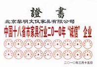 黎明家具于2002年通過了ISO9001:2008質(zhì)量管理體系認(rèn)證,2003年通過了ISO14001:2004環(huán)境管理體系認(rèn)證,2005年公司資信等級評為AAA級,2007年通過了中國環(huán)境標(biāo)志產(chǎn)品認(rèn)證證書,2009年通過了職業(yè)健康安全管理體系認(rèn)證證書。十幾年來,黎明家具及其產(chǎn)品屢獲殊榮,自2000年起年年被北京市工商局公示為守信企業(yè),是“中國著名品牌”重點(diǎn)推廣單位。2005年被確定為中央國家機(jī)關(guān)政府采購定點(diǎn)供應(yīng)商。黎明家具為中共中央辦公廳、國家廣電總局、北京市人民政府等黨政機(jī)關(guān),為中科院、中國航天科技集團(tuán)、清華大學(xué)等科研單位,為聯(lián)想集團(tuán)、大唐電信、中國石化工程公司、建設(shè)銀行北京市分行等大型企業(yè)提供了各類家具及配套服務(wù),并受到社會一致好評。