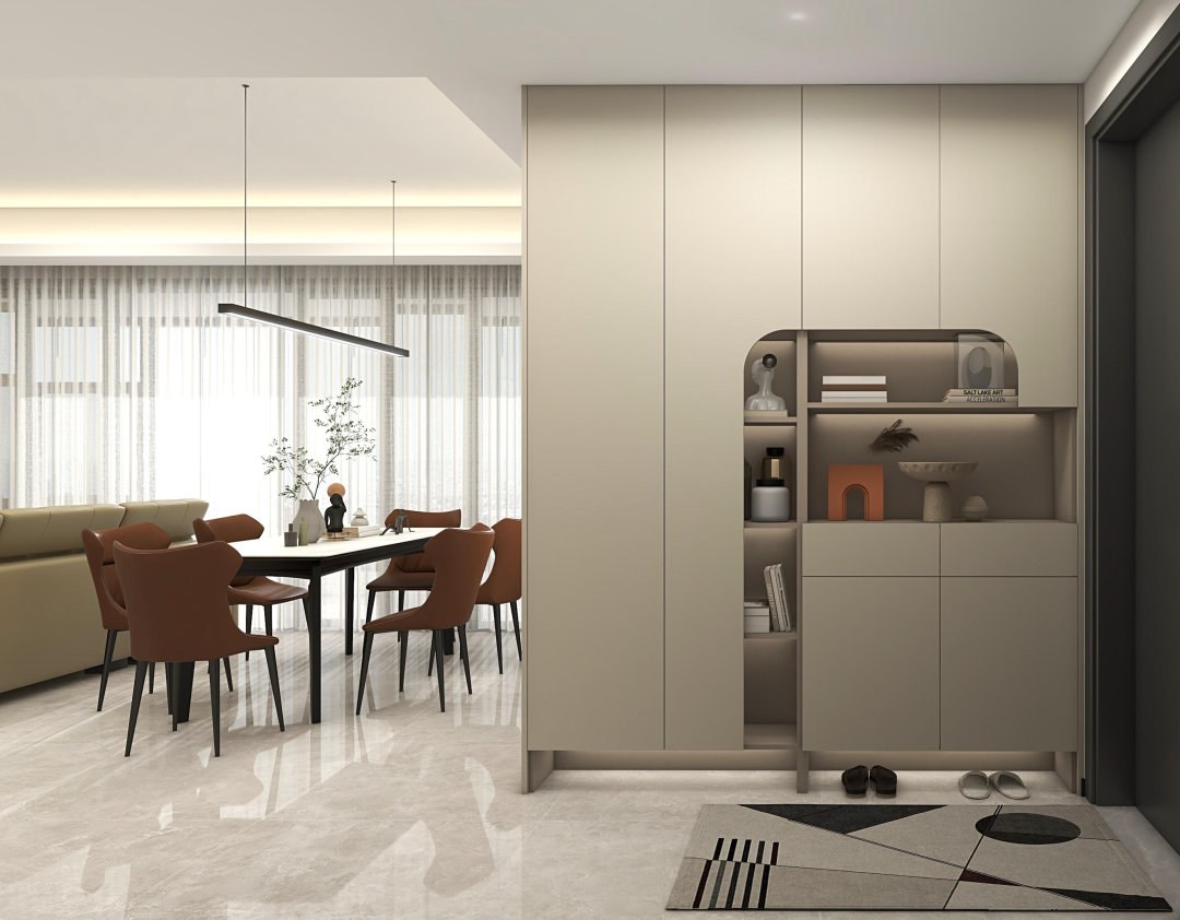 作為第一道風(fēng)景線,玄關(guān)處預(yù)留出足夠的空間,整體更顯寬闊。墻柜解決入戶收納問題,曲線圍合增強(qiáng)設(shè)計(jì)感,彰顯居主個(gè)性與審美。