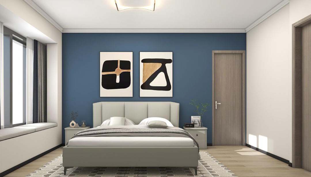 注重以色彩豐盈空間,主臥的深灰藍(lán)背景墻,流露出隨性悠然的生活格調(diào),抽象的掛畫裝飾創(chuàng)意十足。CBD家居佳夢軟床,廓形設(shè)計(jì)時(shí)尚大氣,淺灰色調(diào)素雅溫和,鋪墊出舒緩的睡眠氛圍,放松緊繃的心靈。