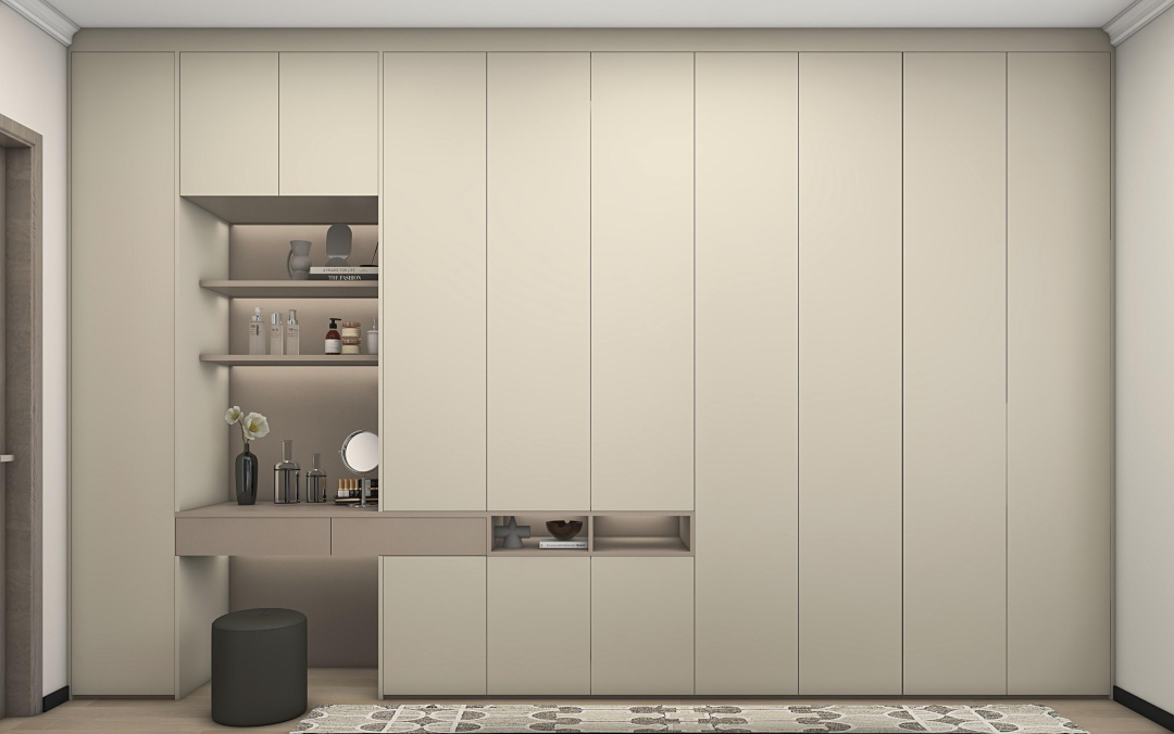 淺咖色墻柜觀感輕盈自然,合理規(guī)劃收納空間,藏露有度,呈現(xiàn)出從容的空間秩序。
