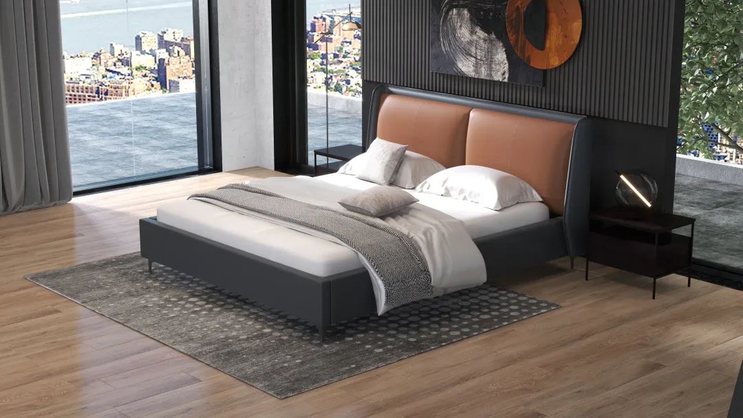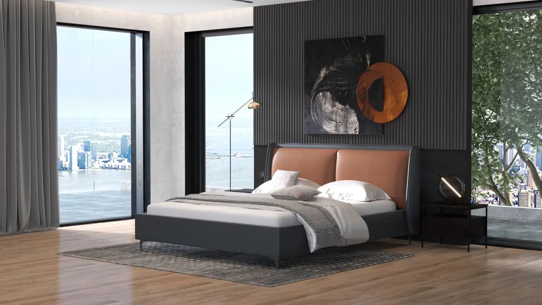 床屏+軟包結(jié)合,雙色搭配,飽滿承托肩背;床框四角處增設(shè)皮扣,別致新穎,簡(jiǎn)約的調(diào)性上多一份設(shè)計(jì)質(zhì)感,令人眼前一亮。