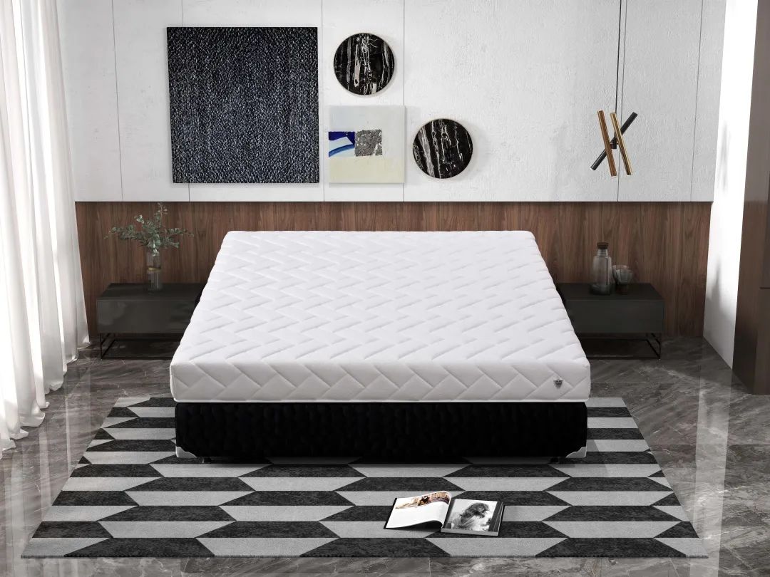 綠色睡眠,健康生活,從一張床墊開始。表層針織面料透氣十足,帶來更舒爽的睡眠體驗(yàn);花紋以矩形拼接而成,呈現(xiàn)幾何美感。