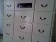 產(chǎn)品的箱體采用的是環(huán)保的實木的材質(zhì),使產(chǎn)品的實用性倍增。產(chǎn)品的裝飾拉手采用的是金屬的材質(zhì)使產(chǎn)品整體更加的亮麗。更顯得高檔。