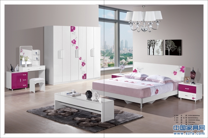 現(xiàn)代簡(jiǎn)約白亮光家具成人彩色亮光套房 時(shí)尚玫紅色