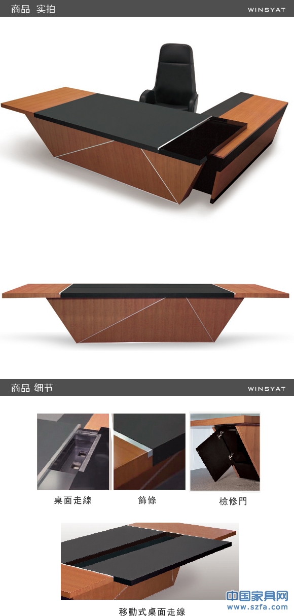 桌腳內(nèi)嵌鋁合金飾條,桌邊活動(dòng)面板內(nèi)置隱藏走線系統(tǒng)