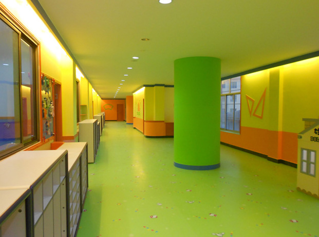 綠色環(huán)保:PVC塑膠地板采用的100%全新環(huán)保材料——聚氯乙烯,不含甲醛、不含石綿、鉛、汞等重金屬有害填充物,完全滿足兒童、學(xué)生對綠色環(huán)??臻g的需求。
