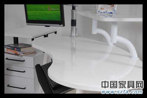 • 理念:人體工學(xué)設(shè)計,巴洛克風(fēng)格,簡約時尚,盡顯高雅品質(zhì),環(huán)形桌面設(shè)計,突出舒適度。吊掛式計算機鍵盤面板,節(jié)省空間,并能輕松調(diào)整舒適的上下高度、左右角度,讓身體、手腕、手臂、肩膀呈現(xiàn)自然放松的工作姿勢。桌下無障礙空間,簡約時尚,并能方便殘障人士使用。上層活動輔助桌板可提供額外的置物空間