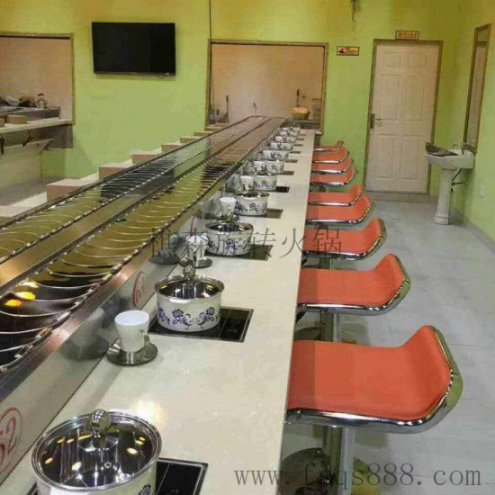 5、回轉(zhuǎn)火鍋設(shè)備可根據(jù)不同店面要求免費設(shè)計不同形狀產(chǎn)品如:三角形,U型,P型,O型,L型,I型等。