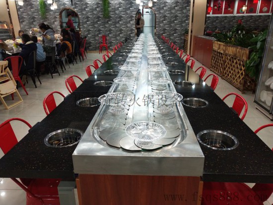 ●回轉(zhuǎn)火鍋輸送設(shè)備可以根據(jù)店面的布局和客戶的要求設(shè)計任何形狀,人和風格;