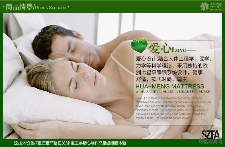 6.硬棕床墊特別經(jīng)過防螨、防蛀、抗菌處理,經(jīng)久耐用、安全、環(huán)保、凈潔,是居家的首選床墊.