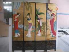 【產(chǎn)品工藝】純手繪漆畫屏風(fēng),堆金手法,畫面凸出有浮雕效果