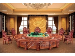 宴動(dòng)八方系列:桌子腳架是進(jìn)口橡木做的,桌面是高密度板貼木皮,轉(zhuǎn)盤(pán)自動(dòng)轉(zhuǎn)(3米以上為遙控控制),帶專利電磁爐(一般為2000W),桌子內(nèi)部為鋼架結(jié)構(gòu)。易涂寶面漆,PE底漆。