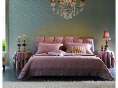 2、絲棉混紡提花工藝,手感與光澤度極佳。甜甜的豆沙色面料,代表喜慶、大方與甜蜜;復(fù)古別致的法國(guó)國(guó)花“鳳尾花”大提花,象征著幸福、安康;此款床是婚慶套床的不二選擇。