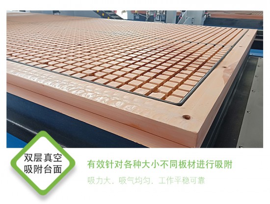 8、真空吸附采用特殊裝置,使切割側(cè)邊光潔度高,無(wú)刀紋,無(wú)震動(dòng)紋;可以用哪個(gè)分區(qū)開(kāi)哪個(gè)分區(qū);