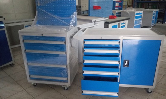 工具車是可移動(dòng)的工具柜,適合在生產(chǎn)現(xiàn)場(chǎng)安全、高效的運(yùn)送工具和零部件。標(biāo)準(zhǔn)型工具車市由各種型號(hào)的工具柜增加頂框和底部腳燈移動(dòng)部件而組成。抽屜的選型和配置與所選用的工具柜完全一致。