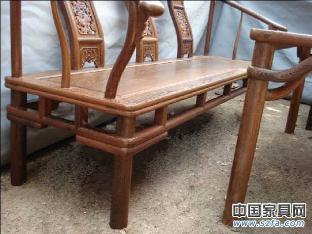此款式分別用紅酸枝和雞翅木兩紅木大料分別做成兩種木料的古典家具