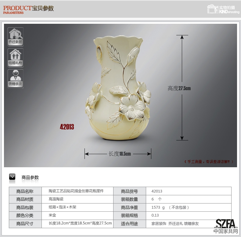 陶瓷手工藝品花瓶家居裝飾品擺設(shè) 客廳軟裝擺件 42013