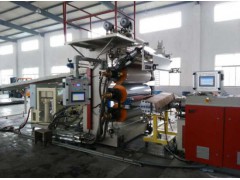 3、擠出機(jī)---通過雙螺桿擠出,將粉狀原材料擠出成型,通過衣架式模具將物料擠壓成片材