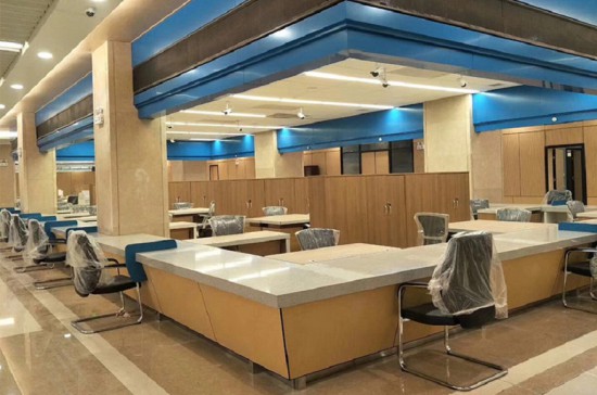 大廳服務(wù)工作人員臺采用柏尚加厚辦公桌,以“L”造型作為結(jié)構(gòu)的基本元素,更簡約及富有審美情趣,整個輪廓采用獨樹一幟的非對稱結(jié)構(gòu),使整個大廳的辦公和整體環(huán)境舒適、美觀,得到前來辦理業(yè)務(wù)的群眾一致好評。
